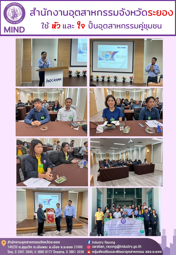ในการขยายผลการดำเนินงานตามหลักธรรมาภิบาลอย่างยั่งยืนพร้อมศึกษาดูงานโดยมี นายสันติเทพ สาลีงาม รองผู้จัดการทั่วไปแผนกความปลอดภัย อาชีวอนามัยและสิ่งแวดล้อม เป็นผู้บรรยาย ณ บริษัท อินโดรามา ปิโตรเคม จำกัด นิคมอุตสาหกรรมเอเชีย เลขที่ 4 หมู่ 2 ตำบลบ้านฉาง อำเภอบ้านฉาง จังหวัดระยอง