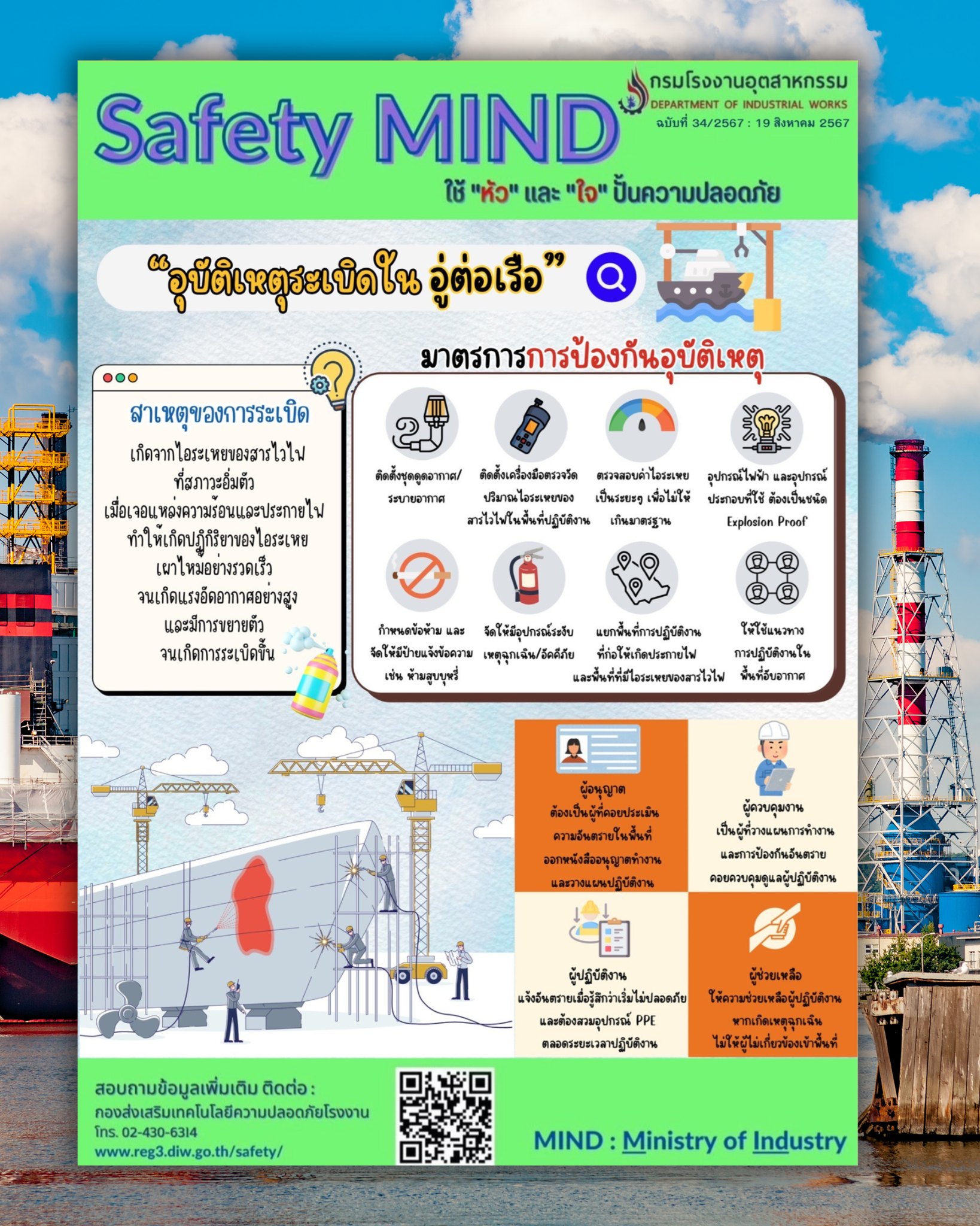 #MIND #ความปลอดภัยต้องมาก่อน #อู่ต่อเรือปลอดภัย #DIW #โรงงานปลอดภัย #กรมโรงงานอุตสาหกรรม #DIW #SafetyMIND #อู่ต่อเรือปลอดภัย #โรงงานอุตสาหกรรม #สารไวไฟ #เชื่อมปลอดภัย #ความปลอดภัยโรงงาน #ป้องกันอุบัติเหตุ